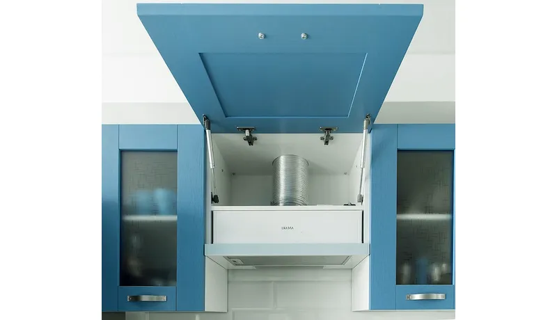 Las campanas empotradas sólo se recomiendan en casos de cocinas eléctricas, y la distancia entre ellas debe ser de 55-60 cm por encima de la placa.