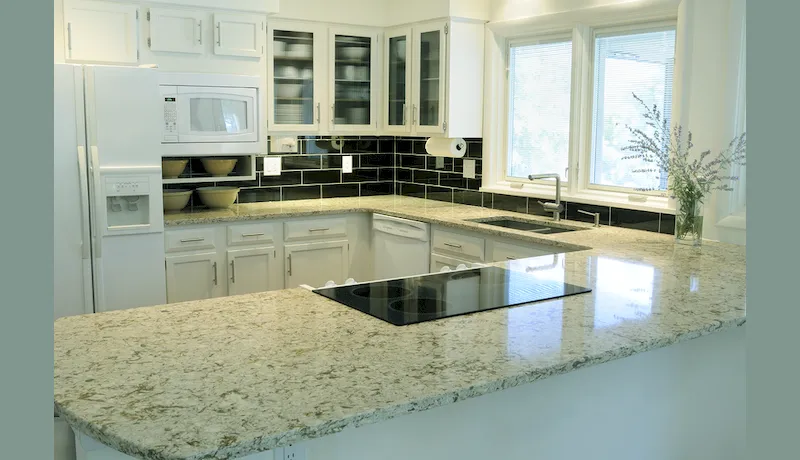 Mostrador de granito: Destaca por su dureza y belleza natural, además de combinarse fácilmente con prácticamente cualquier estilo de cocina. El acabado puede ser pulido o rugoso, siendo en ambos casos muy fácil de limpiar.