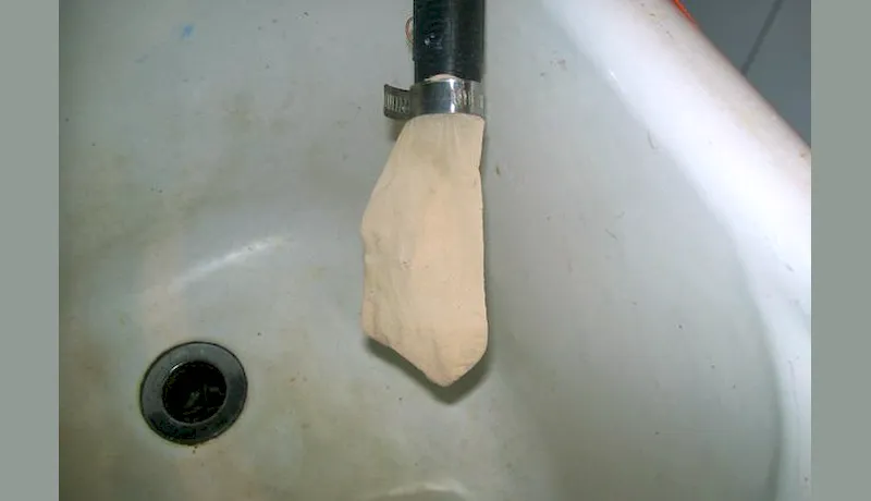 Para evitar que esto ocurra, es una buena idea colocar un filtro, una trampa o un recolector de pelusas al final de la manguera de drenaje. Estas piezas se pueden comprar en las ferreterías o, en su defecto, se pueden montar en casa con una media antigua de nylon, sujetándola en el extremo de la tubería con un ajustador de plástico, metal o plástico de goma.