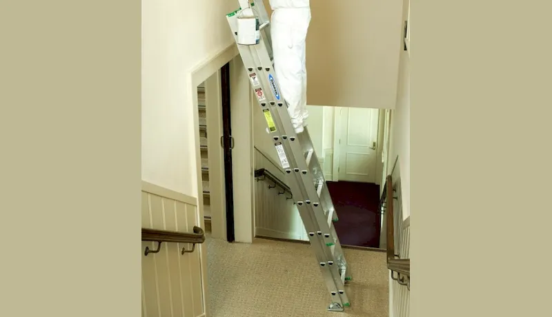 Por lo que respecta a este último punto, se deben seguir siempre los principios básicos para todos los pintores, como no intentar nunca pintar una zona a la que no se puede acceder con seguridad, nunca utilizar uno escala que esté dañado o inadecuado para el trabajo y nunca lo coloque sobre una base no asegurada o en posiciones incómodas o inestables.