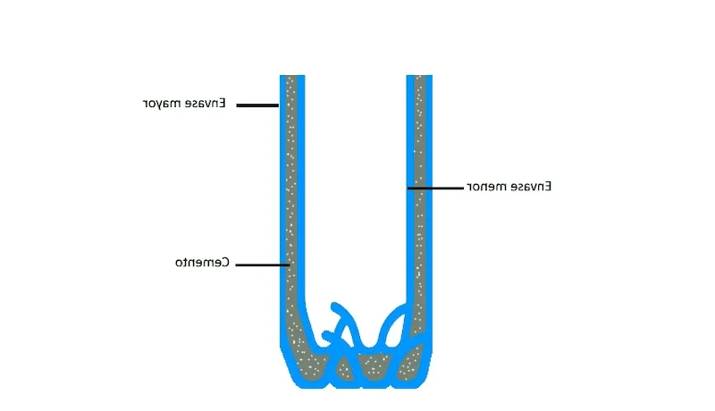 Posteriormente, el molde más pequeño se empuja al centro del cemento, haciendo que penetre a la profundidad deseada, dejando una base de hormigón de espesor adecuado.